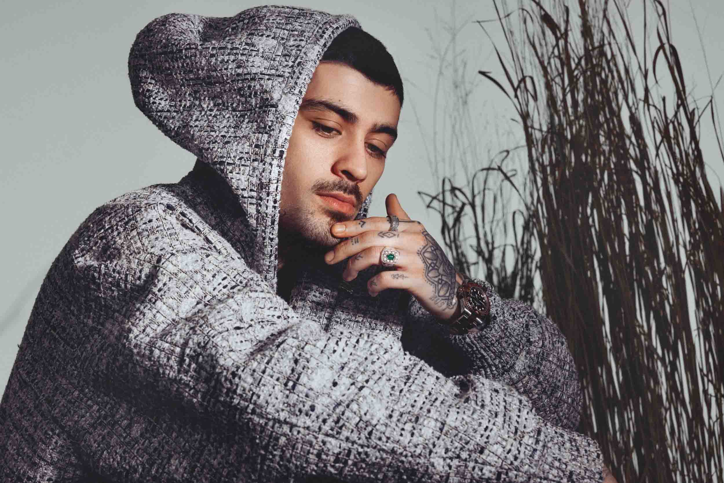 The rest of the time, he’s at home. He paints a picture of farm life: acres of land to insulate himself, a big old house that terrifies his sisters when they visit because of its “Evil Dead vibes,” lots of animals. Nothing quite out of “Old MacDonald,” but he’s got chickens, dogs, cats, and turtles. He used to have four turtles, but now there are only two. “Which is sad, but that’s life,” Zayn says plainly. “Things live and die. And you’re very aware of that on the farm. You see death quite a lot. You also see a lot of life. You see a lot of things blossoming.”